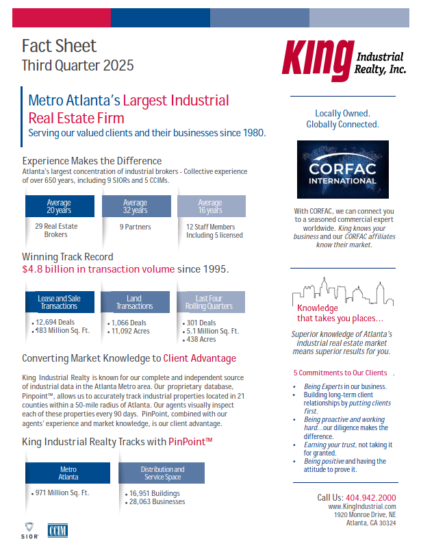 Our Third Quarter Fact Sheet showcases the strength of Atlanta’s industrial market — and the dedication that keeps our clients ahead.