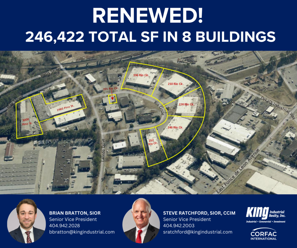 If you are looking for a space to lease or need assistance in lease negotiations, reach out to us at www.kingindustrial.com or 404-942-2000 to explore the opportunities possible for your business.